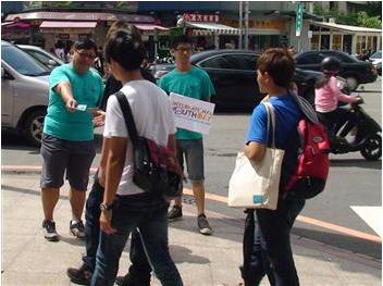 因此今年山達基教會為了響應世界青年日,在台南也走上街頭,去青少年最多的南方公園發放反毒手冊。並且舉著聯合國國際青年日今年的口號看板,邊喊口號邊發放手冊,目的就是要讓青少年知道,陰險狡詐的毒品不會是青少年的夥伴。